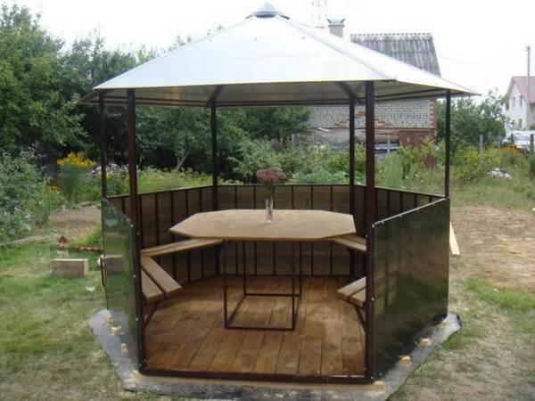Самый простой вариант беседки открытого типа – столбы-опоры. В зависимости от геометрической формы беседки определяется количество опорных столбов. Простая классическая форма представляет собой квадрат (либо прямоугольник). Следовательно, минимальное количество опор определяется количеством углов – в данном случае 8.